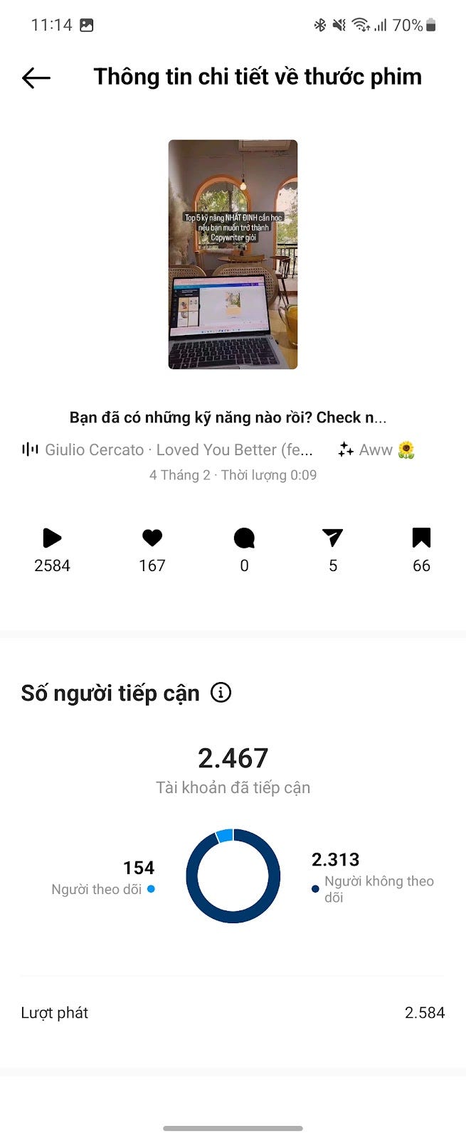 Tuy nhiên, không phải Founder nào cũng có network đủ tốt, và càng không phải mọi doanh nghiệp đều có đủ ngân sách để chi cho Marketing. Cá nhân tôi - một người làm Solo Business, tôi cũng có trải nghiệm tương tự. Tôi không quen biết đủ nhiều hay có thương hiệu đủ mạnh mẽ để khách hàng tự tìm đến. Tôi cũng không có chi phí hay nguồn lực để xây dựng ngay những kênh truyền thông hàng trăm nghìn người theo dõi. Vì vậy, tôi đã chọn một cách khác: tự tiếp thị bằng nội dung. Sau một năm, tôi vẫn chưa có vài trăm nghìn người theo dõi hay một con số khủng nào để khoe. Nhưng tôi có: